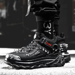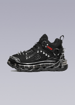 Stepping into these black goth shoes is like stepping into a realm where style and edge collide. Adorned with menacing metal spikes and integrated chains, they enhance your attire with a textured sophistication. The vivid clash of the alt style shoes' aggressiveness and the all-black aesthetic paints a narrative of the modern urban warrior, unapologetically different, and strikingly confident.