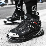 Experience the dynamic fusion of the darkness and the street with our Black Goth Sneakers - the epitome of uncompromising individuality. These shoes are not simply an accessory, but a powerful statement of self-acceptance, a declaration of independence from the confines of mainstream aesthetics.
