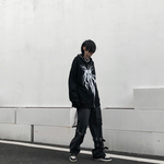 This oversized zip-up hoodie is more than a piece of clothing - it's a statement. It emanates an aura of quiet power, its intimidating and menacing white design of a creature of darkness boldly declaring your presence. This is the embodiment of nonconformity, a sartorial rebellion against the ordinary. The grunge black hoodie doesn't just clothe you - it gives voice to your unique personality, refusal to back down, and embracing the shadows.