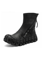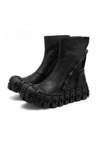 Each pair of these futuristic shoes exudes a rock-motorcycle vibe, marrying the raw energy of rock with the sophistication of high-end fashion. It perfectly complements any darkwear or warcore ensemble, creating an alluring, full-black outfit that screams mystery and allure.