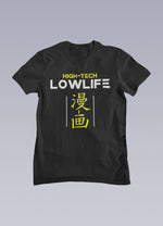 Despite its message, this shirt does not compromise on style. Whether you're building a cyberpunk, techwear, or darkwear ensemble, our High Tech Low Life Shirt provides the perfect base to create standout looks all year round. During summer months, when the quest for a balance between casual and meaningful becomes paramount, this shirt shines as an ideal companion, allowing you to effortlessly express your affinity for the Japanese cyberpunk aesthetic.