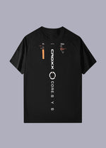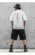 Embroidered on the front of this piece are two white inscriptions - subtle and elegant, they are but the appetizer to the grand banquet of design that awaits on the back. Here, radiant motifs of white and orange dazzle the eye, invoking visions of the cyberpunk and cybernetics worlds. These are not merely designs, they are proclamations of your allegiance to progress and technology, and your fascination with dystopian universes.