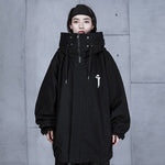 Crafted with the latest in winter techwear technology, our techwear winter coat is a testament to the transformative power of Japanese techwear design. This techwear waterproof jacket ensures you remain warm, dry, and poised to conquer the elements in style. With its unique high collar and reinforced oversized hood, you'll be enveloped in a cocoon of protection against rain and snow.